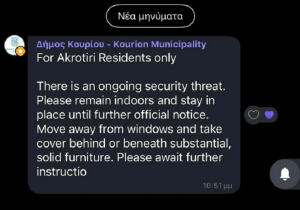 Συναγερμός προκλήθηκε για νέα απειλή στην περιοχή του Ακρωτηρίου στην Κύπρο. Όπως έκαναν γνωστό οι αρχές της χώρας το συμβάν έληξε.