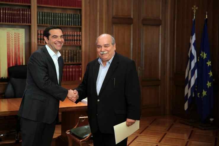 Στο Μέγαρο Μαξίμου βρίσκεται ο πρόεδρος της Βουλής, Νίκος Βούτσης, ο οποίος παραδίδει στον πρωθυπουργό, Αλέξη Τσίπρα, τους τέσσερις πρώτους τόμους του Φακέλου της Κύπρου.