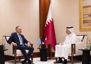 Στη Ντόχα συναντήθηκαν σήμερα ο Έλληνας υπουργός Εξωτερικών, Γιώργος Γεραπετρίτης, με τον πρωθυπουργό και υπουργό Εξωτερικών του Κατάρ, Μοχάμεντ μπιν Αμπντουλραχμάν Αλ Θάνι. Κατ...