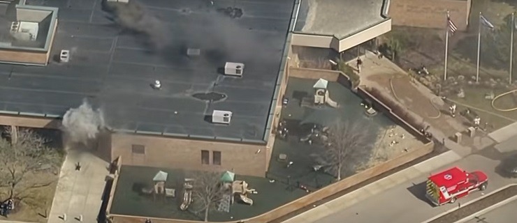 Αμερικανικά μέσα ενημέρωσης μετέδωσαν εικόνες με μαύρο καπνό να υψώνεται από το κτίριο της συναγωγής.