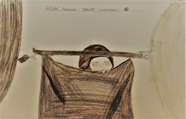 Η νεαρή Κούρδισα είναι μόλις 18 χρονών. Γεμάτη όνειρα και αγωνία για τη ζωή της. Της αρέσει να ζωγραφίζει και να παίζει κιθάρα. Με αυτόν τον τρόπο εκφράζει τα συναισθήματα της για όσα δεν μπορεί ή δεν πρέπει να μιλήσει. «Φύγαμε από την χώρα μου, μαζί με τους γονείς και τα μικρότερα αδέλφια μου, πριν πέντε χρόνια. Μείναμε τέσσερα χρόνια στην Τουρκία. Από τη Σμύρνη περάσαμε με βάρκα στην Ελλάδα. Εκείνες οι στιγμές ήταν οι πιο τρομακτικές. Στη συνέχεια πήγαμε στην Ειδομένη και εδώ και δύο μήνες βρισκόμαστε στη Ριτσώνα. Θέλουμε να φθάσουμε στη Γερμανία, όπου ζει ο μεγάλος μου αδελφός. Το πρόβλημα είναι ότι εγώ είμαι πλέον 18 χρονών και δεν μπορώ να πάω με την οικογένεια μου. Πρέπει να κάνω άλλα χαρτιά. Άλλη διαδικασία. Μόνη μου. Μπορώ να πάω όπου θέλω, αλλά όχι μαζί τους. Αναγκαστικά θα χωριστούμε. Τουλάχιστον για κάποιο διάστημα. Θα είμαι ολομόναχη. Νιώθω πολύ άσχημα. Δεν ξέρω τι να κάνω. Φοβάμαι για το αύριο, γιατί είμαι κορίτσι. Για κάποιους, το να είσαι γυναίκα, σημαίνει ότι είσαι ένα τίποτα. Οι γυναίκες δεν μπορούν να κάνουν ό,τι θέλουν, ούτε να εκφράσουν αυτά που θέλουν. Έχουμε και εμείς καρδιά και όνειρα. Το δικό μου όνειρο είναι να σπουδάσω ιστορία. Μου αρέσει πολύ να τραγουδάω και θέλω να γίνω τραγουδίστρια. Θέλω επιτέλους να ζήσω μία φυσιολογική ζωή».