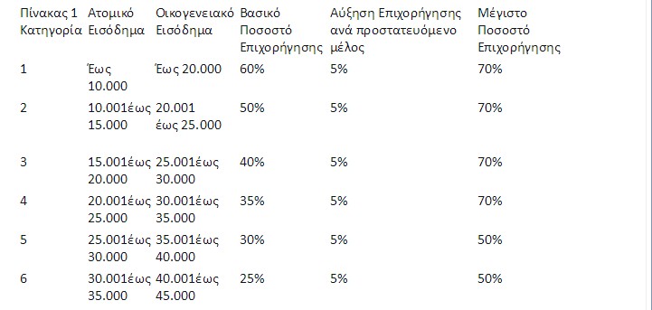β. πληρούν τα εισοδηματικά κριτήρια των κατηγοριών του παρακάτω πίνακα (Πίνακας 1).