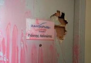 Επίθεση με μπογιές πραγματοποίησε ομάδα ατόμων στο γραφείο του πολιτευτή των ΑΝΕΛ, Γιάννη Λαϊνιώτη, στην Πάτρα.Η ομάδα ατόμων έγραψε επίσης συνθήματα σε τοίχους και προκάλεσε φθορέ...