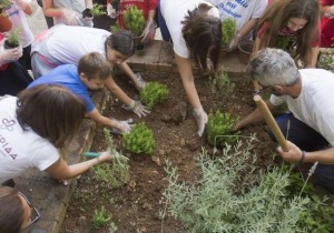 Φυτά της ελληνικής φύσης με ευεργετικές για την υγεία ιδιότητες, όπως δεντρολίβανο, μέντα, λουίζα και μαντζουράνα, φύτεψαν σήμερα στην αυλή του Γ.Ν. Παπαγεωργίου μαθητές της Δ’ κ...