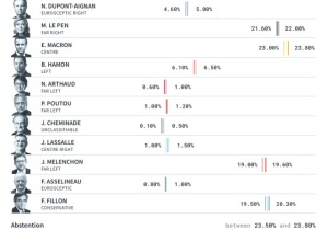 Με ποσοστό 23,82% ο Εμανουέλ Μακρόν αναδείχθηκε νικητής του πρώτου γύρου των προεδρικών εκλογών στη Γαλλία και σύμφωνα με τα πρώτα γκάλοπ, θα είναι και ο νικητής στον δεύτερο γύρ...