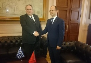O υπουργός Εξωτερικών Νίκος Κοτζιάς με τον Αλβανό ομόλογό του Ditmir Bushati, κατά τη συνάντηση τους που είχαν σήμερα το βράδυ, έθεσαν ως στόχο την περαιτέρω ανάπτυξη των διμερών ...