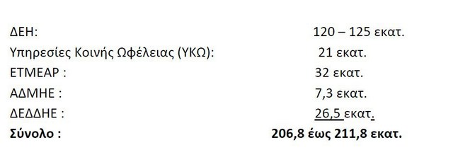 Δεδομένου ότι τα ποσά των ΥΚΩ αποτελούν κατά 98% περίπου έσοδο της ΔΕΗ, και τα ποσά του ΕΤΜΕΑΡ είναι μέρος των εσόδων του Ειδικού Λογαριασμού ΑΠΕ, το έλλειμμα του οποίου καλύπτεται κατά 85 έως 90% από τη ΔΕΗ, προκύπτει ότι τα διαφεύγοντα έσοδα της ΔΕΗ από τις ρευματοκλοπές είναι της τάξης των 170 εκατ. ευρώ.
