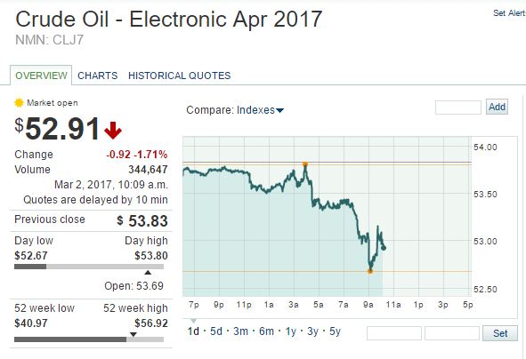 Την ίδια ώρα ισχυρές πιέσεις καταγράφεται στο αργό πετρέλαιο η τιμή του οποίου υποχωρεί κατά 1,65% στα 53 δολ το βαρέλι. Σε παρόμοιο μοτίβο και ο χρυσός με την τιμή του συμβολαίου να διολισθαίνει κατά 0,80% στα 1,239 δολ το βαρέλι.