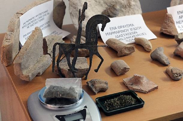 Πιο αναλυτικά, πρόκειται για 26 μεταλλικά νομίσματα Αρχαίων, Ρωμαϊκών, Βυζαντινών και Οθωμανικών χρόνων, ένα πήλινο κλειστό αγγείο με λαβή, ένα τμήμα χείλους χάλκινου αγγείου, μία ακέραιη πήλινη αγνύθα, ένα χάλκινο κυλινδρικό στέλεχος, μία χάλκινη καμπυλόσχημη λαβή κι ένα κυκλικό μεταλλικό αντικείμενο.