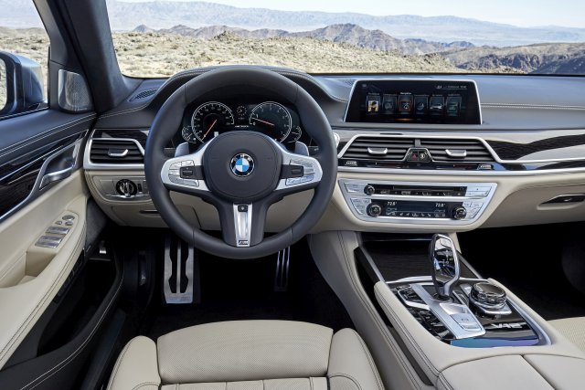 Ο γνώριμος χαρακτήρας BMW M Performance είναι διάχυτος και στο εσωτερικό. Το αποκλειστικό δερμάτινο τιμόνι M φέρει το λογότυπο M, περιλαμβάνει μπουτόν πολλαπλών λειτουργιών σε Pearl Gloss Chrome στις ακτίνες του και χειριστήρια shift paddles για μηχανικές αλλαγές σχέσεων στο πίσω τμήμα. Διακοσμητικές πλάκες μαρσπιέ με φωτιζόμενο λογότυπο V12 ξυπνούν το πάθος για οδηγική απόλαυση, ενώ ο πίνακας οργάνων περιλαμβάνει ταχύμετρο με την ονομασία του μοντέλου και μία ένδειξη που τώρα φτάνει τα 330 km/h. Όπως τα πεντάλ M και το υποπόδιο του οδηγού M, αυτό το ταχύμετρο δείχνει τις δυνατότητες επιδόσεων της BMW M760Li xDrive. Η περιοχή της κεντρικής κονσόλας γύρω από τον επιλογέα ταχυτήτων και το iDrive Controller είναι διακοσμημένη με ένα ένθετο BMW Individual σε Piano Finish Black και το λογότυπο V12. Στο προαιρετικό Touch Command Panel στο πίσω κεντρικό υποβραχιόνιο, υπάρχει ένα παρόμοιο στοιχείο V12.