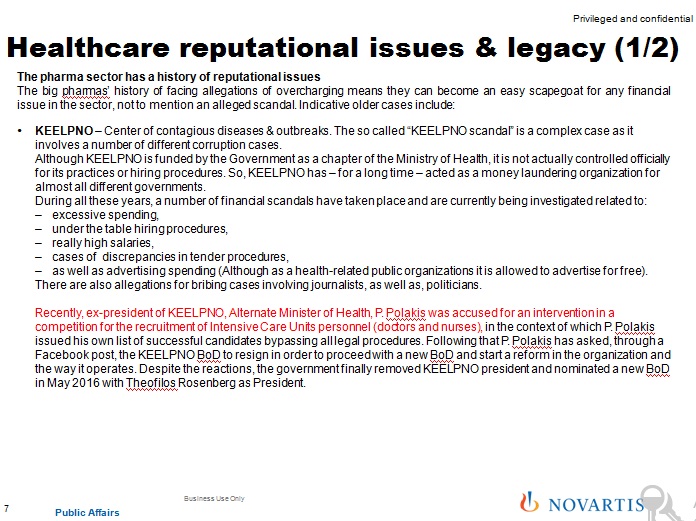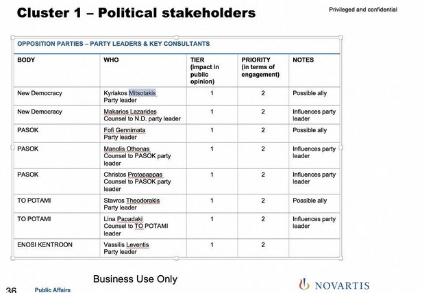 Σε εμπιστευτική έκθεσή με οδηγίες προς τα στελέχη της - την οποία φέρνει στο φως η «Εφημερίδα των Συντακτών», η φαρμακοβιομηχανία στην ουσία ομολογεί το σκάνδαλο, ενώ προχωρά στη "χαρτογράφηση" του πολιτικού κόσμου.