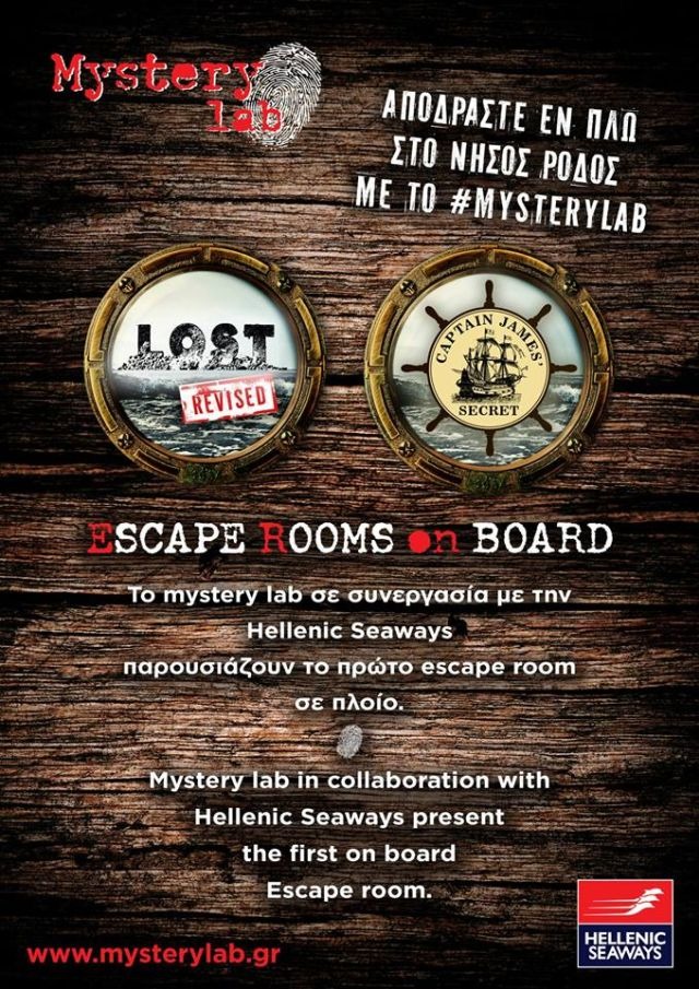 Η Hellenic Seaways, καινοτομεί για ακόμη μια φορά βελτιώνοντας περαιτέρω τη μοναδική εμπειρία που μπορεί να απολαύσει ο ταξιδιώτης εν πλω, εγκαινιάζοντας στο Νήσος Ρόδος το πρώτο escape room εν πλω.