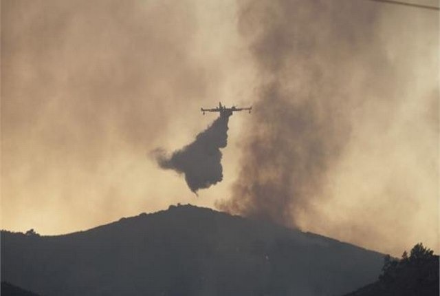 Στην επιχείρηση κατάσβεσης συνδράμουν και δύο αεροσκάφη.