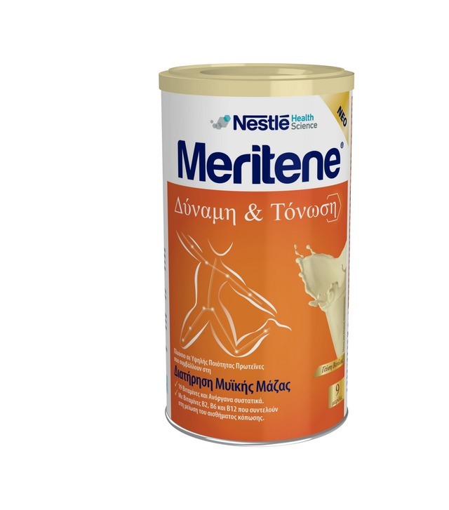 Το Μeritene® Δύναμη & Τόνωση απευθύνεται σε άτομα που μεγαλώνοντας δεν προσέχουν τη διατροφή τους και φυσικά δεν λαμβάνουν αρκετή πρωτεῒνη, έτσι ώστε να διατηρήσουν τη μυϊκή τους μάζα, ενώ, έχουν διαρκώς αίσθημα κόπωσης. Σε άτομα που θέλουν εκτός από υγιείς να είναι και ενεργητικοί και να ζουν με έναν πιο δραστήριο τρόπο ζωής.