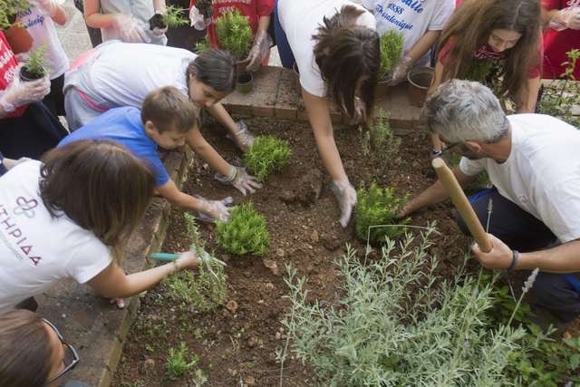 Φυτά της ελληνικής φύσης με ευεργετικές για την υγεία ιδιότητες, όπως δεντρολίβανο, μέντα, λουίζα και μαντζουράνα, φύτεψαν σήμερα στην αυλή του Γ.Ν. Παπαγεωργίου μαθητές της Δ’ και Ε’ τάξης δημοτικού του Κολεγίου «ΔΕΛΑΣΑΛ».