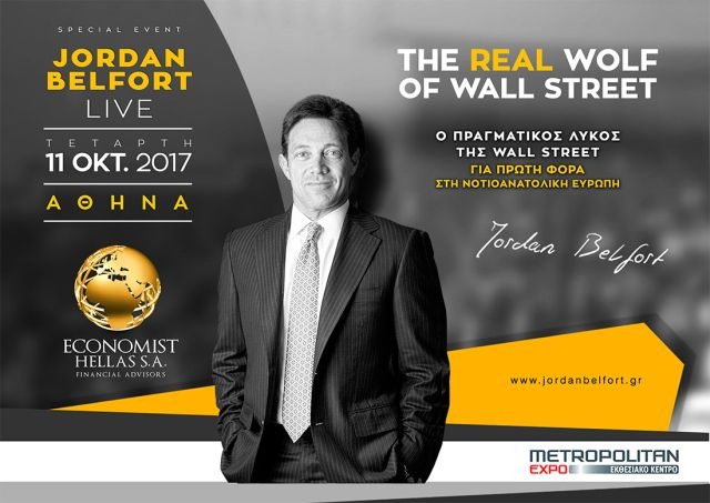 Ο Λύκος της Wall Street, πλέον motivational speaker, Jordan Belfort έρχεται στην Ελλάδα, την Τετάρτη 11 Οκτωβρίου 2017, στο Εκθεσιακό Κέντρο, Metropolitan Expo. Στο πλαίσιο της μεγάλης εκδήλωσης του Economist, o Belfort θα αναφερθεί σε δύο θεματικούς τομείς: