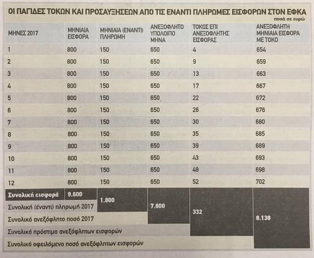 Σύμφωνα με δημοσίευμα του «Ελεύθερου Τύπου» η έναντι πληρωμή θα έχει τσουχτερό τόκο (8%), δεν θα παίρνουν ασφαλιστική ενημερότητα και σε καμία περίπτωση δεν «παγώνουν» κατασχέσεις για παλιές ληξιπρόθεσμες οφειλές.