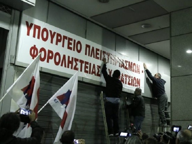 Σε υπουργείο «Πλειστηριασμών-Φοροληστείας και Χαρατσιών» μετονόμασαν το υπουργείο Οικονομικών μέλη του ΠΑΜΕ.