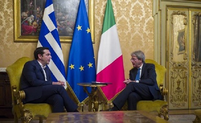 O πρωθυπουργός Αλέξης Τσίπρας συναντήθηκε σήμερα το απόγευμα με τον Ιταλό ομόλογό του Πάολο Τζεντιλόνι στο κυβερνητικό μέγαρο της Ρώμης Παλάτσο Κίτζι.