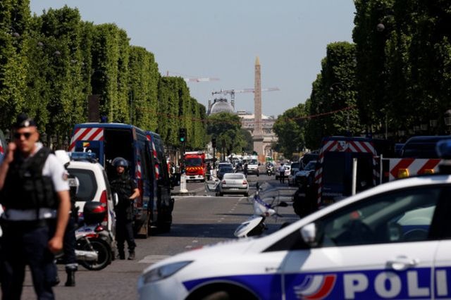 Γκαζάκια, περίστροφα και τουφέκια εφόδου Καλάσνικοφ βρέθηκαν στο εσωτερικό του οχήματος που έπεσε πάνω στο αστυνομικό βαν στη λεωφόρο των Ηλυσίων Πεδίων, στο Παρίσι, μετέδωσε το Γαλλικό Πρακτορείο επικαλούμενο την αστυνομία. Την ίδια στιγμή, ο υπουργός Εσωτερικών Ζεράρ Κολόμπ έκανε λόγο για μια «απόπειρα επίθεσης».