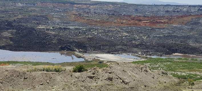 Τεράστιες μάζες εδάφους αποκολλήθηκαν και μετακινήθηκαν σε απόσταση τουλάχιστον 40 μ., στη μεγάλη κατολίσθηση που έγινε το πρωί του Σαββάτου στο ορυχείο Αμυνταίου του Λιγνιτικού Κέντρου Δυτικής Μακεδονίας.
