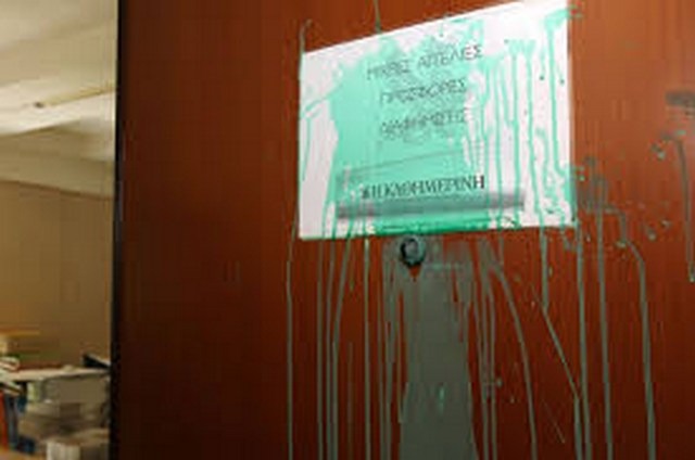 Συγκεκριμένα, άτομα, μπήκαν στα γραφεία, τα οποία βρίσκονται στον πρώτο όροφο οικοδομής επί της οδού Τσιμισκή, όπου πέταξαν πράσινες μπογιές και φέιγ-βολάν. Αμέσως μετά αποχώρησαν.