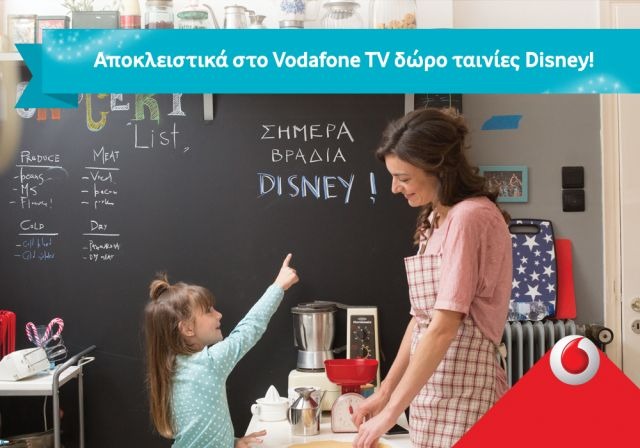 H Vodafone στηρίζει τις ανάγκες της οικογένειας μέσα από το Vodafone Family που περιλαμβάνει εξειδικευμένα προϊόντα και υπηρεσίες για περισσότερη επικοινωνία, ψυχαγωγία αλλά και ποιοτικό χρόνο. Από σήμερα δίνει τη δυνατότητα για ακόμη περισσότερη ψυχαγωγία εμπλουτίζοντας το Vodafone TV παρέχοντας αποκλειστικά τη μεγάλη ποικιλία παιδικών ταινιών της Disney, που δίνονται ως δώρο για όλο το καλοκαίρι.